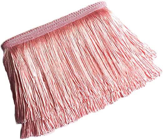 9 yards of Simplicity bright pink polyester chainette fringe, 4 inches wide, 100 percent polyester. Bright pink polyester fringe is perfect for apparel and crafts, accessories, home decor, etc. Dust with dry cloth.